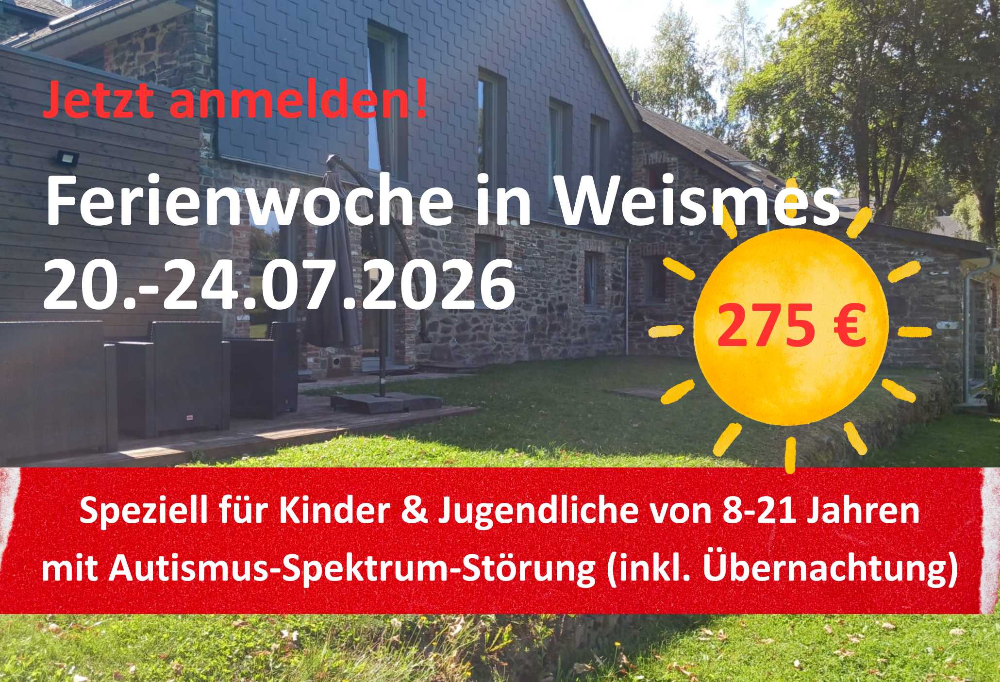 Spezielle Ferienwoche für Kinder und Jugendliche mit Autismus-Spektrum-Störung. Auch 2026 bieten wir in Zusammenarbeit mit der Freizeitbegleitung Elsenborn diese gezielt konzipierte Ferienwoche für Kinder und Jugendliche von 8 bis 21 Jahren an.